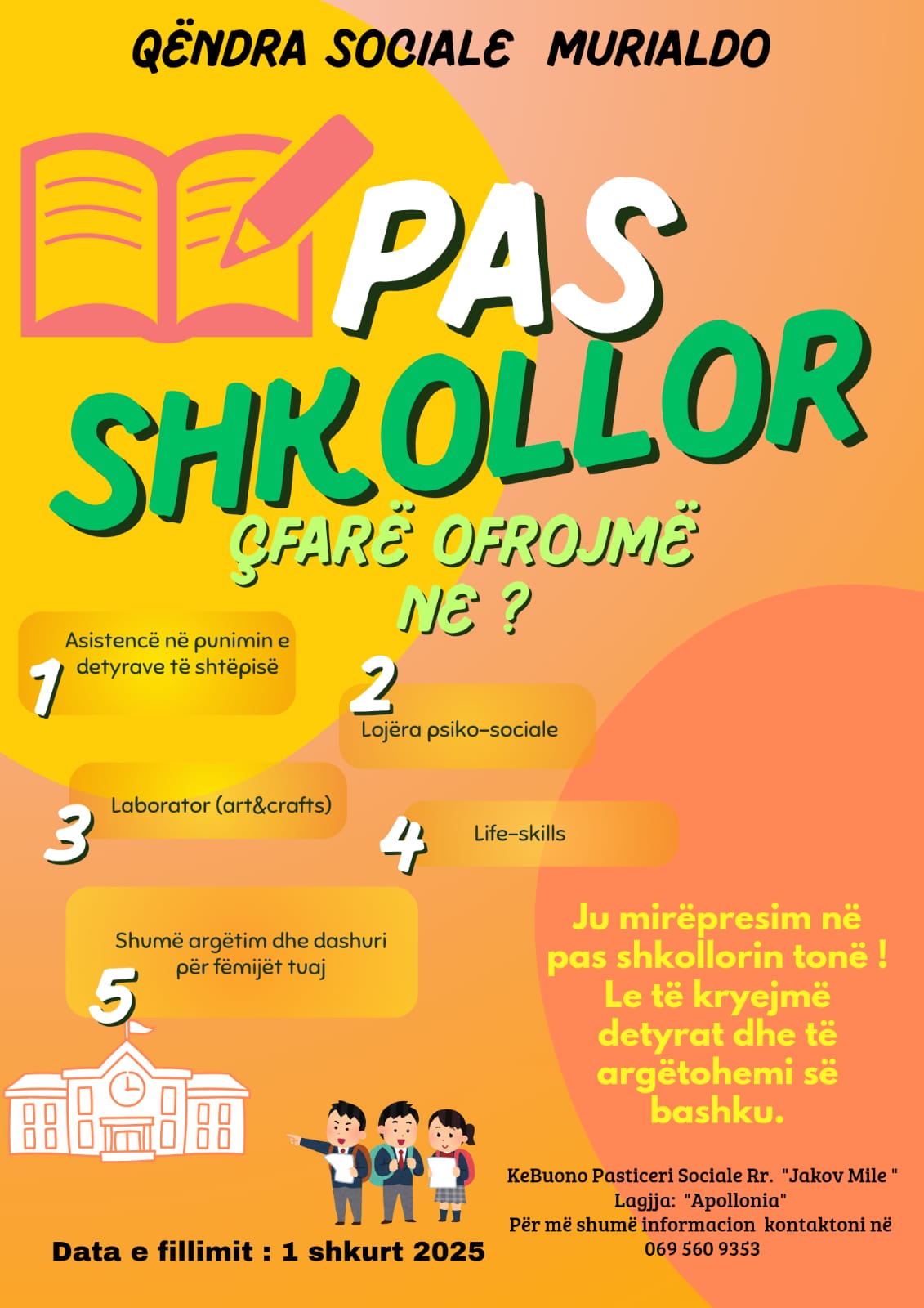 Ju ftojme te regjistroheni ne programin me te ri qe inicion Qendra Sociale Murialdo ne qender te qytetit te Fierit.